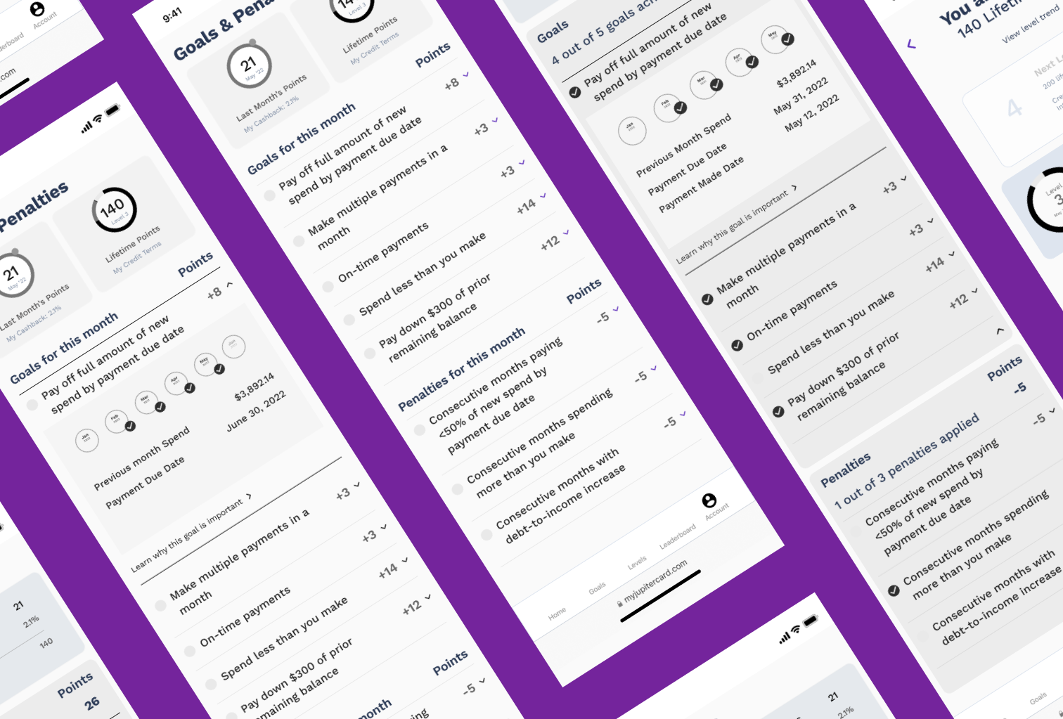 CHALLENGE: Credit Card offerings in the US aren’t typically designed to help people. Incentives are to drive profit for the credit card companies and incentivize borrowers to spend too much. The new generation of borrowers expect something that is on their side, fair, and transparent compared to the status quo. Jupiter aims to solve this by rewarding healthy financial decisions. They needed a prototype to demonstrate proof of concept of their offering to future customers, potential recruits, and investors.